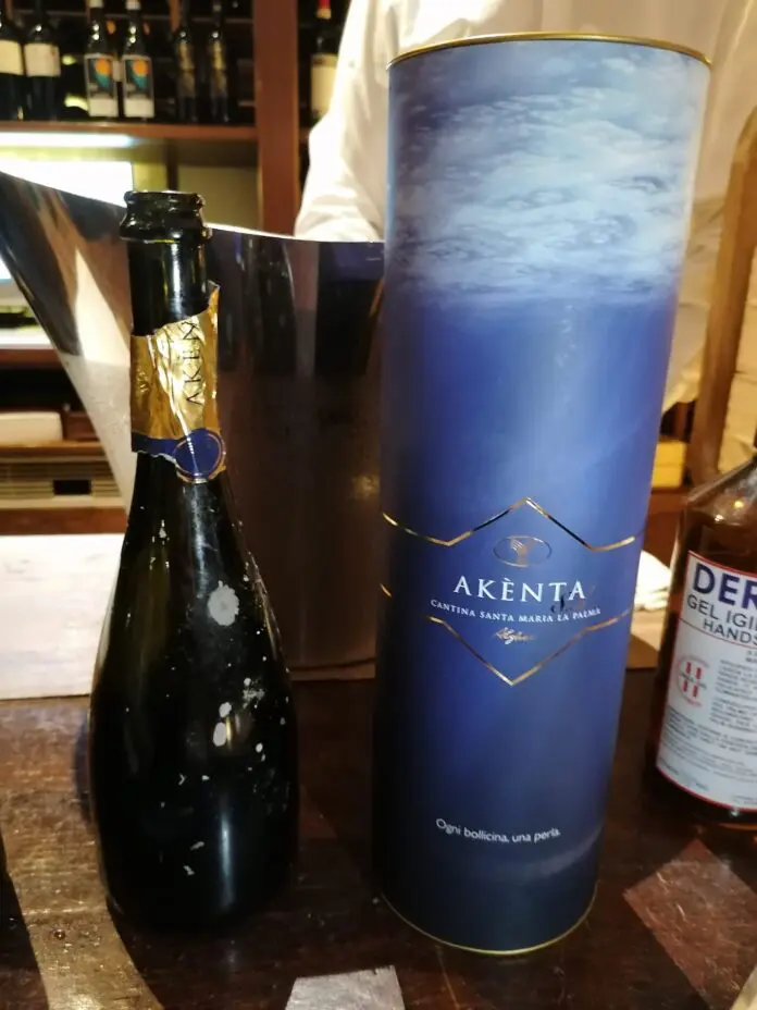 La cantina Santa Maria La Palma è una delle più importanti aziende vitivinicole della Sardegna, con 800 ettari coltivati e una produzione di oltre 5 milioni di bottiglie. Il metodo Charmat viene utilizzato per la produzione di Akènta Sub, uno spumante subacqueo dal nome benaugurale (da ‘a chent’annos’, augurio di lunga vita in sardo).