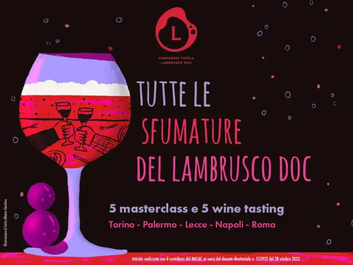 Il Lambrusco DOC, nelle sue varie declinazioni, è il protagonista del tour “Tutte le sfumature del Lambrusco DOC“. Il tour prevede 5 tappe tra aprile e giugno, che si terranno da nord a sud Italia, a Torino, Palermo, Lecce, Napoli e Roma.