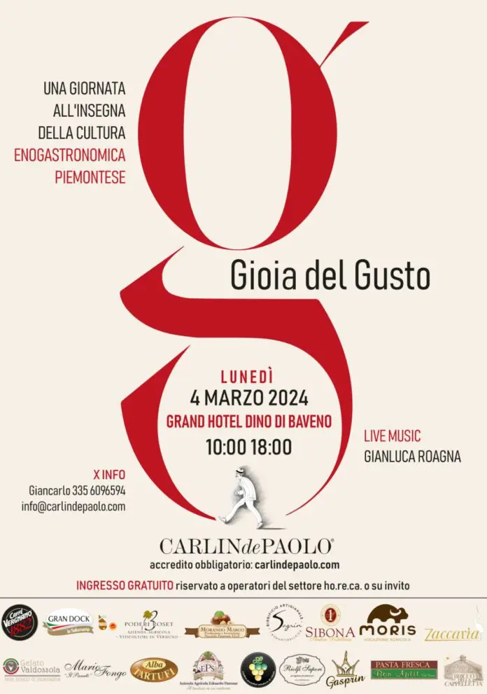 Carlin de Paolo presenta la ‘Gioia del Gusto’ a Baveno: lunedì 4 Marzo 2024