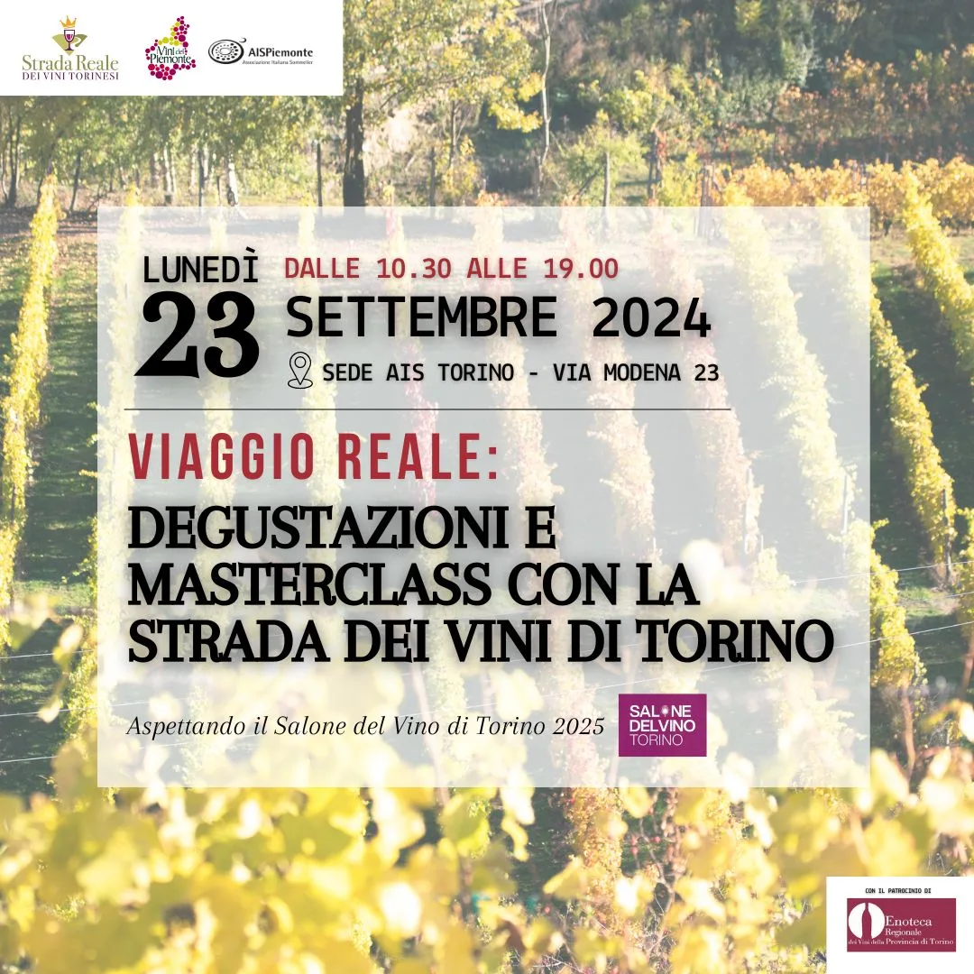 Lunedì 23 settembre 2024, si terrà Viaggio Reale: Degustazioni e Masterclass con la Strada dei Vini di Torino, un evento dedicato ai vini e ai prodotti agroalimentari della Strada Reale dei Vini Torinesi, protagonisti di una giornata di degustazione alla scoperta delle eccellenze enogastronomiche del territorio.